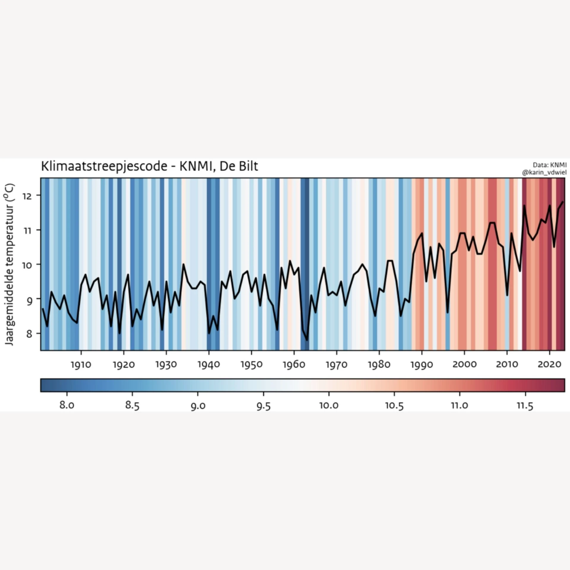Meetgegevens laten zien dat de gemiddelde temperatuur in Nederland de afgelopen decennia is gestegen. In De Bilt ligt de gemiddelde jaartemperatuur tegenwoordig ongeveer 2 graden hoger dan rond 1970. Ook is de gemiddelde jaarlijkse neerslag in die periode met ruim 100 mm toegenomen.